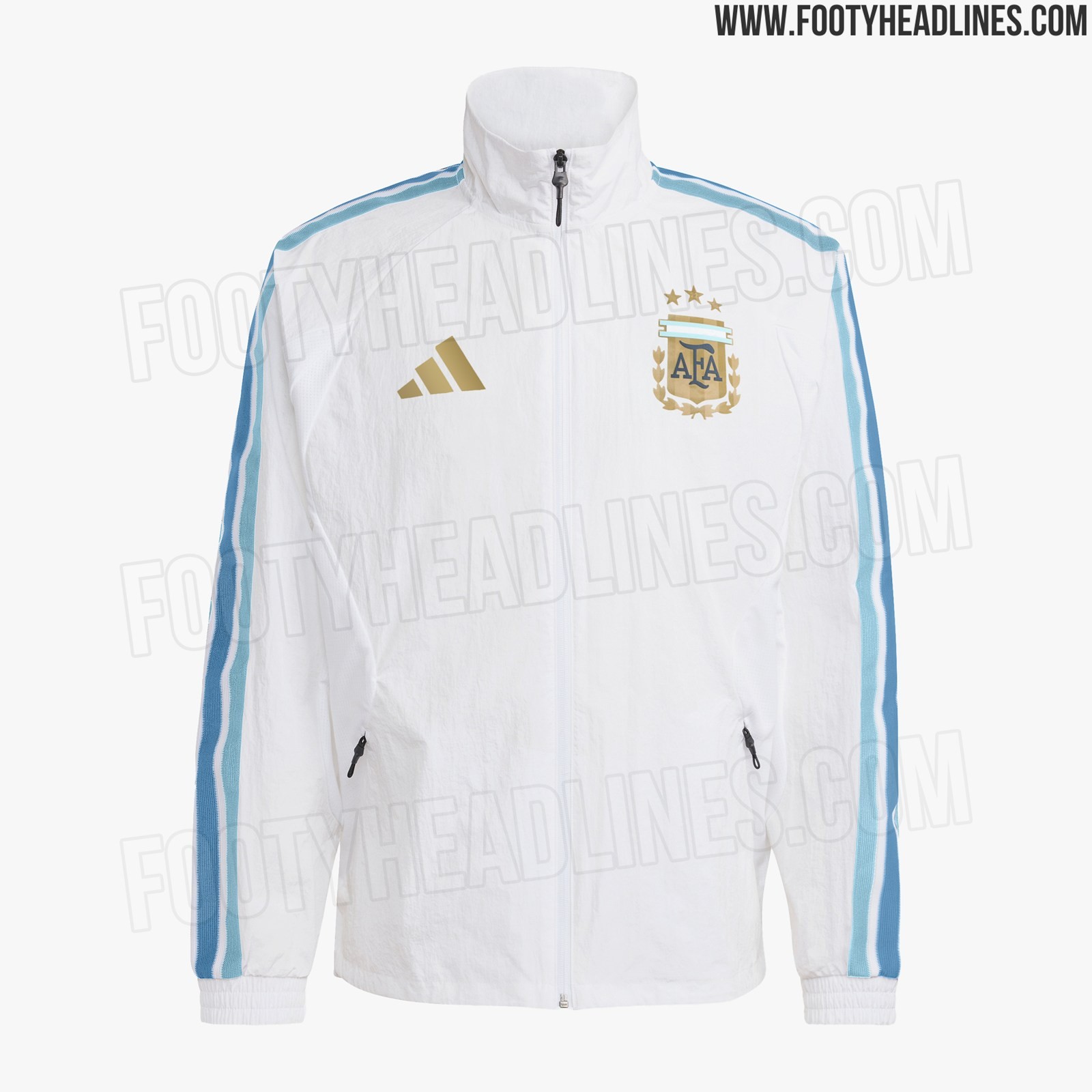 La giacca Adidas Argentina 2026 Home Anthem ha una base bianca pulita, che si abbina perfettamente ai colori della magli...