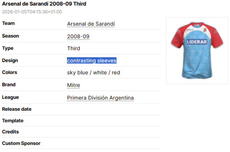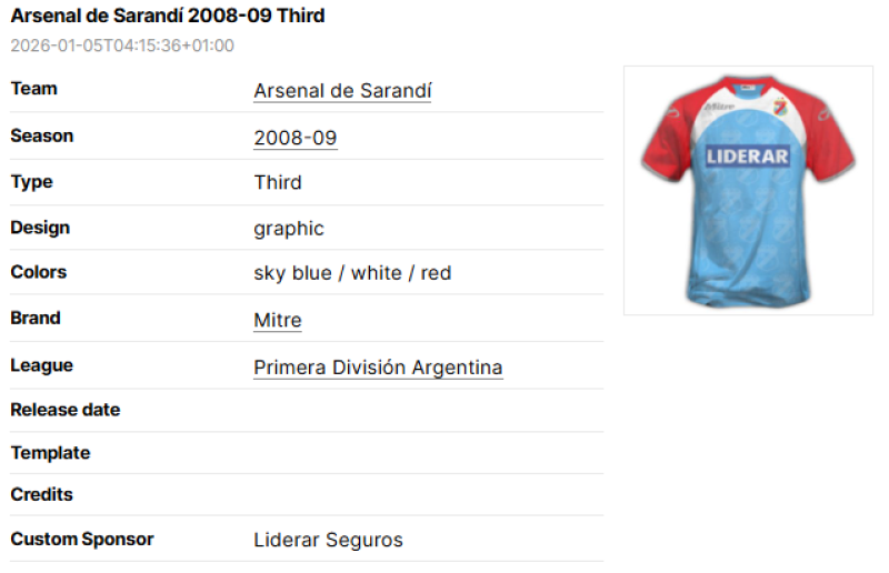 Instead, use official channels of communication such as Discord, X or email to submit a full sponsor history. Only use this text box for one-off special sponsors which deviate from the regular main sponsor. The regular main sponsor appears prominently on the home shirt of that season.