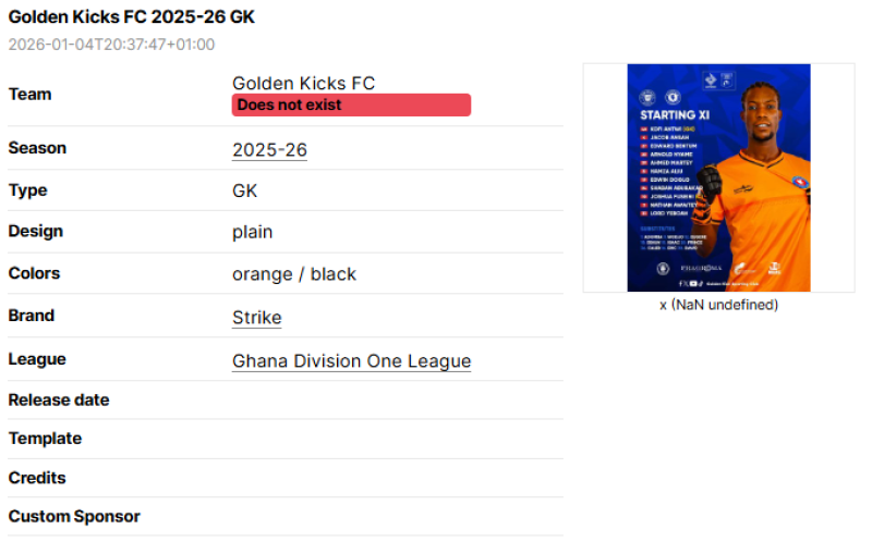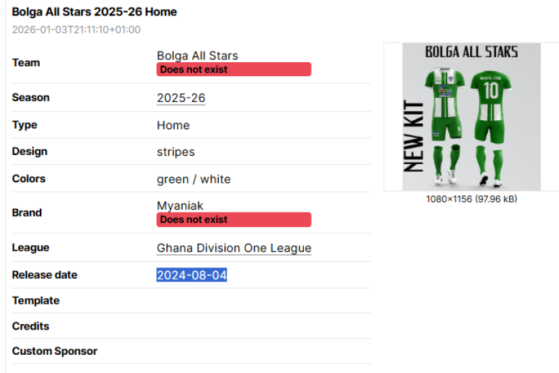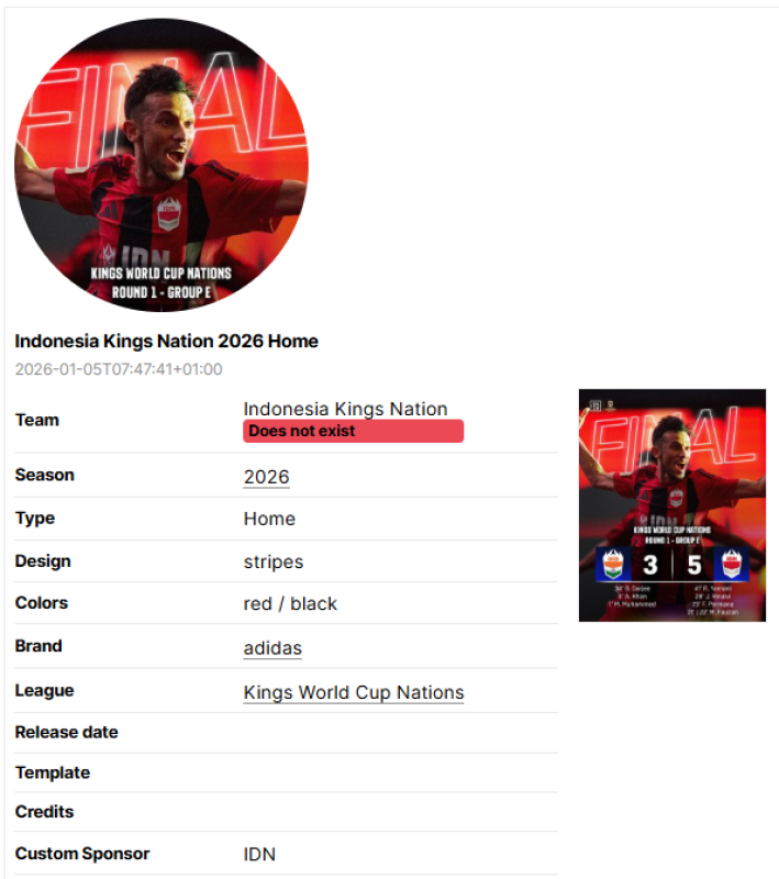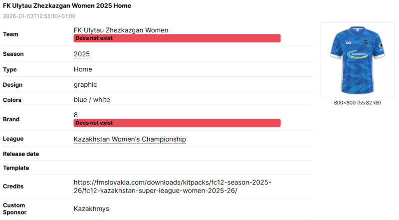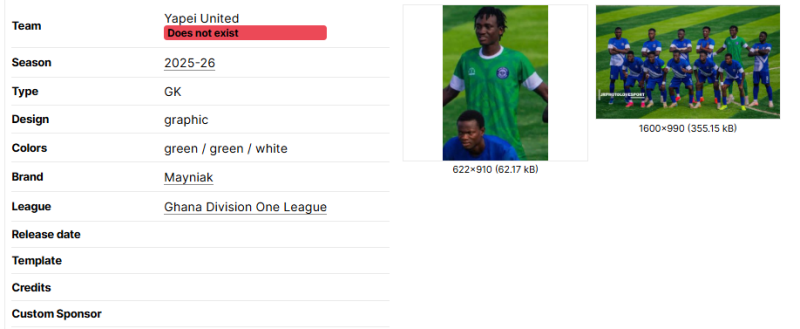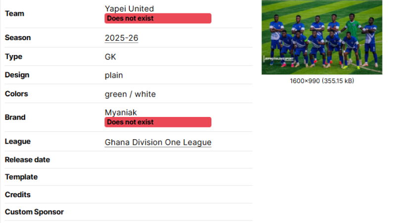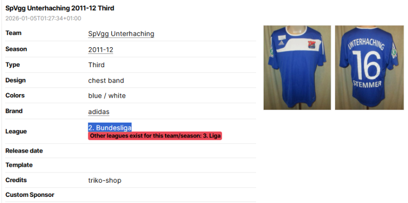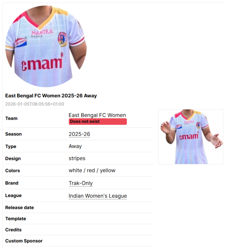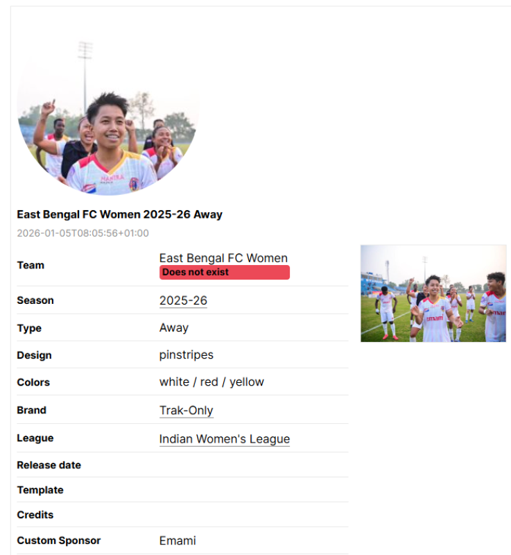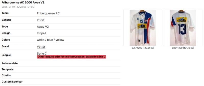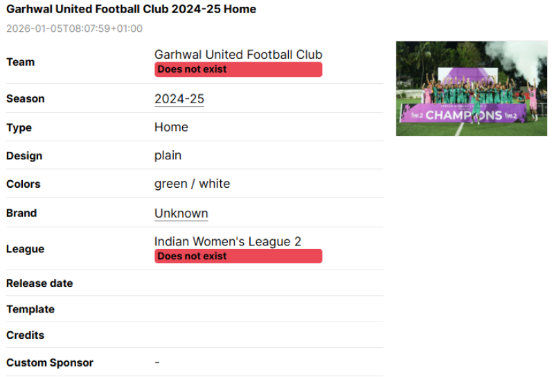 Sometimes, information regarding the kit such as league, brand or team name are wrong.