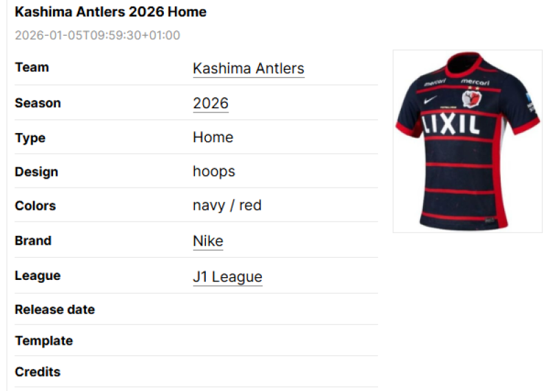 Match kits are shirts that were or will be worn in an official match. Please do not add lifestyle items to this segment.