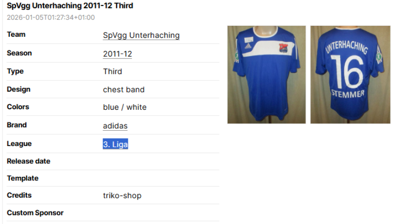 We believe that the most important football shirt is always the premium, authentic version. Sometimes it is not possible to get high-quality pictures of the authentic version, but if both replica and authentic version are available it is always best to only add the authentic version, and potentially attach pictures of the replica version with a short explanation in the credits, too.
