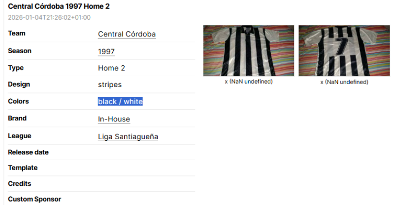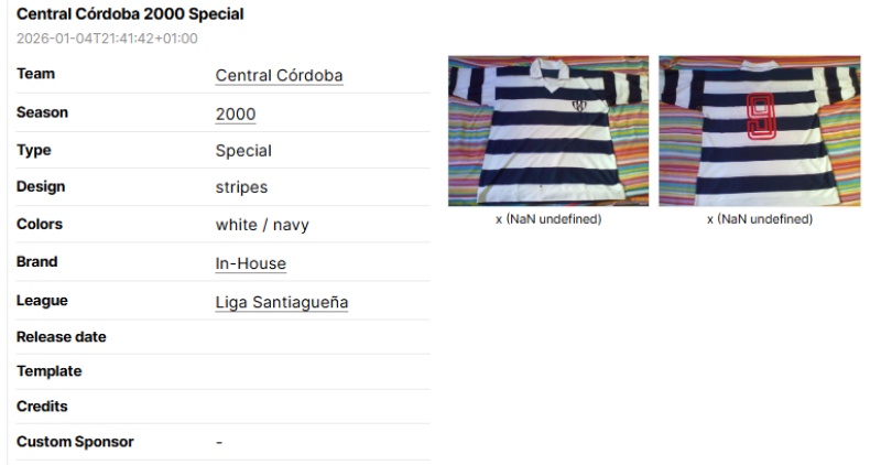 That is why the most important rule is to crop pictures to put the focus on the football shirt itself. This will always be necessary in case it is not possible to easily make out the football shirt in the preview image of a new database entry.