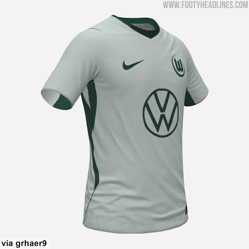 Koszulka wyjazdowa Nike VfL Wolfsburg 2026-2027 ma jasnoszary kolor podstawowy w połączeniu z ciemnozielonymi detalami, ...