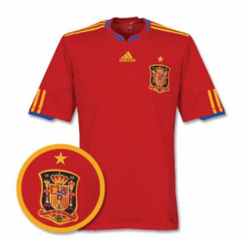 Camisa da Espanha depois de ganhar a Copa do Mundo, com uma estrela no logo que foi usada pelo resto do ano antes de lan...